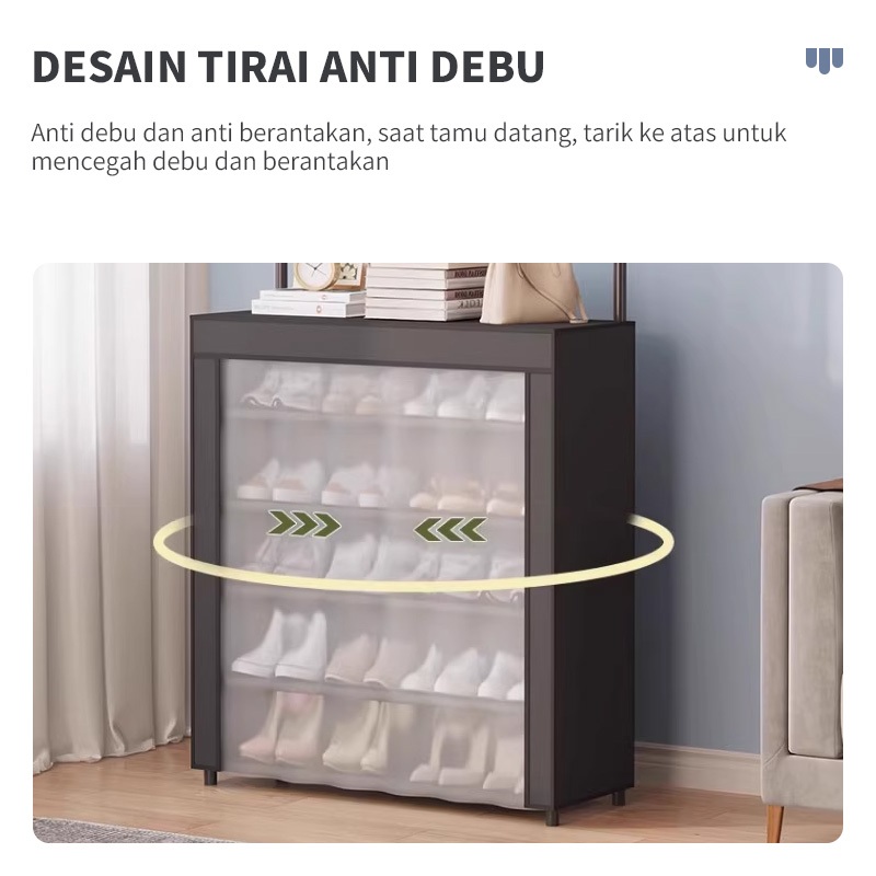 YONEZAWA Lemari Sepatu Kedap Udara Dan Anti Debu Dengan Tirai Rak Sepatu Seaguna Hanger Tas Topi Rak Penyimpanan Gantung