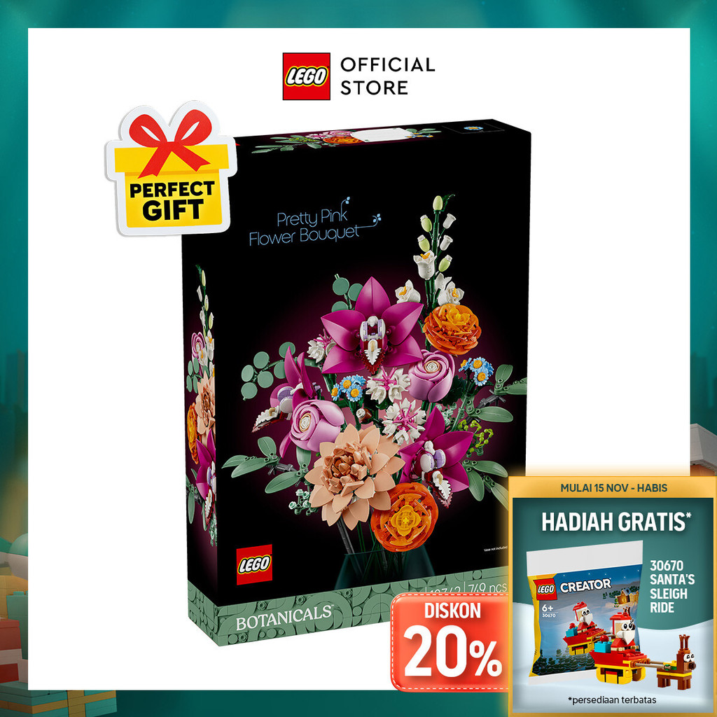 LEGO Botanicals 10342 Pretty Pink Flower Bouquet (749 Pieces) Mainan Susunan Balok (18 Tahun+)