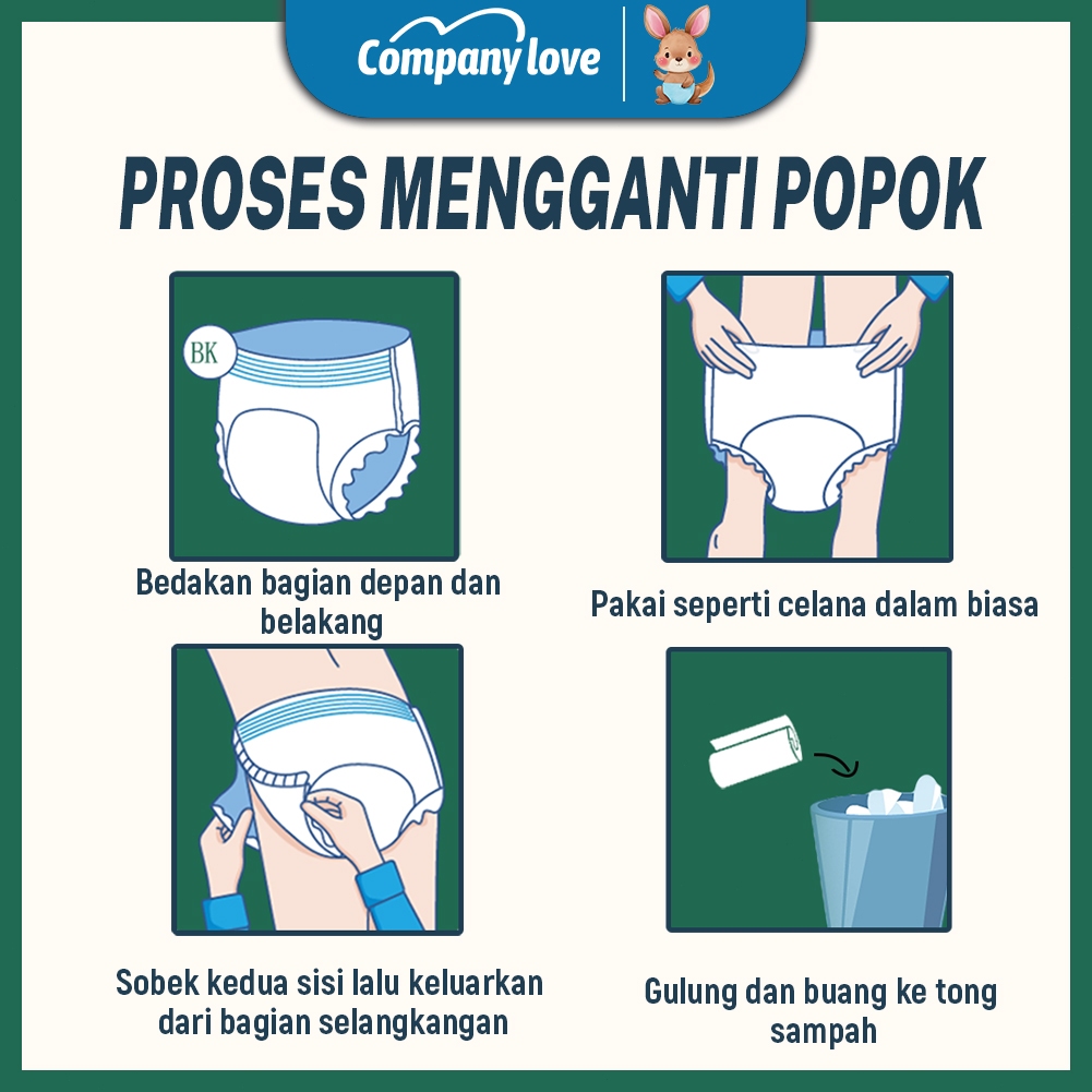 [Free 1 Pcs]Company Love Popok Dewasaa Celana Orang Tua Celana All Size 9pcs S M L XL XXL Kualitas Tinggi Sangat Menyerap 1000ml