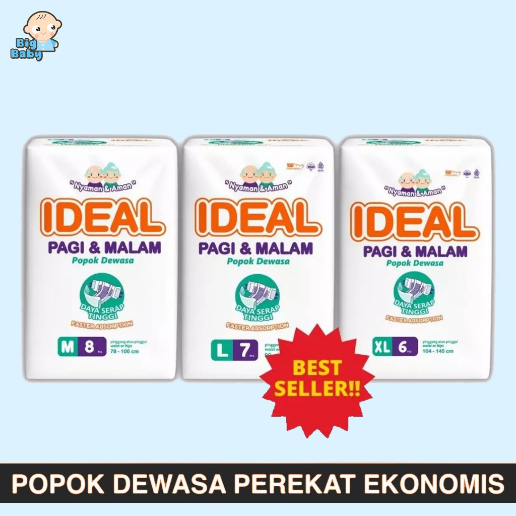 IDEAL Popok Dewasa Tipe Perekat Anti Bakteri Size M8 L7 XL6 Pcs