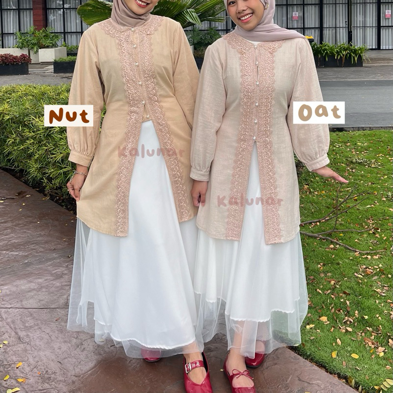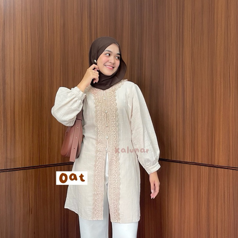 Tunik Joy Kalunar Kondangan Lebaran Atasan Gamis Melayu Renda Wanita