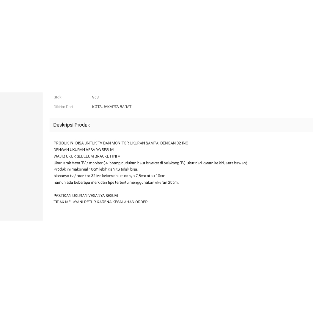 Bracket Tv Lcd Led Telescopic 1032 Inch Vesa 75 & 10 Cm Taffware X100A
