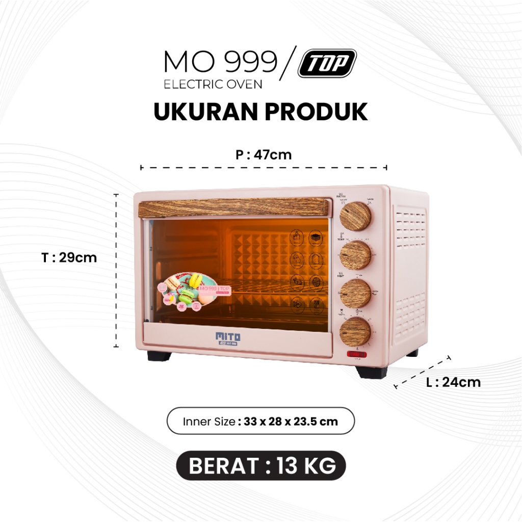 Electric Oven 28 Liter Top Wood Series Mo999 Pink Dari Mito