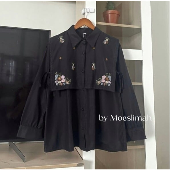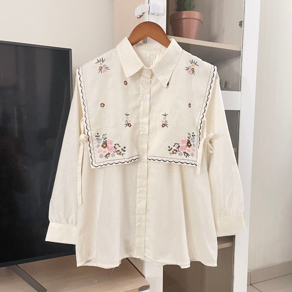 Narika Shirt - Kemeja Bordir Bahan Linen - Ukuran S M L XL XXL XXXL 5L - Kemeja Jumbo - Atasan Wanita Jumbo - Kemeja Wanita Lengan Panjang