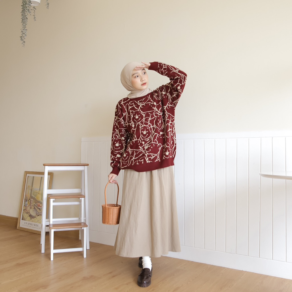Sweater Bear Atasan Rajut Wanita Oversize Tebal