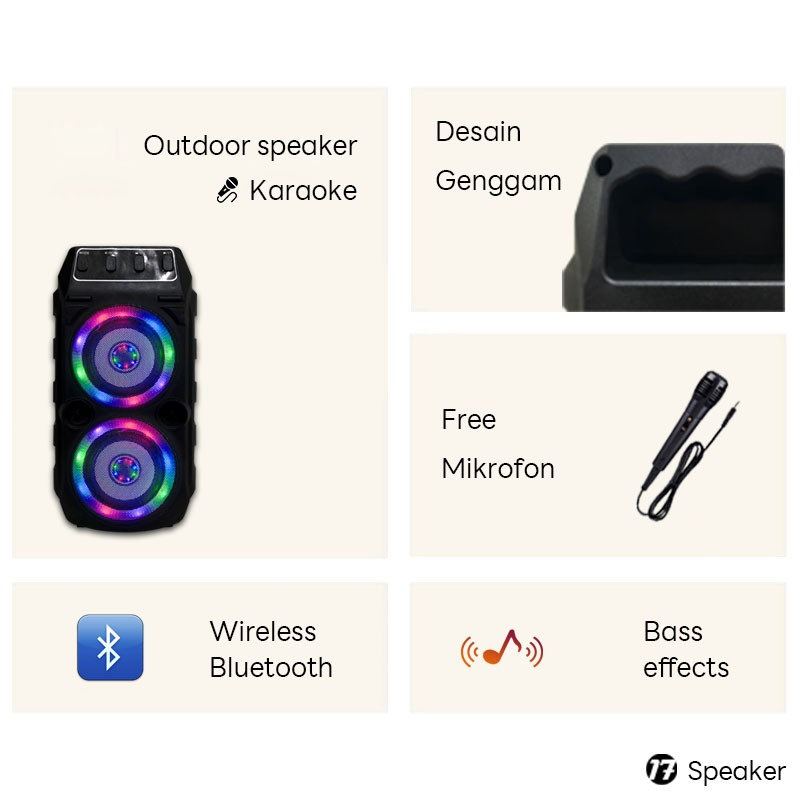 Speaker Bluetooth Karaoke Portable Full Bass Bonus Mic Lampu Rgb