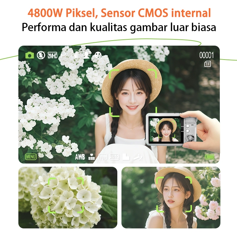 Akona Kamera Digital Mini 48MP 8X Zoom Digicam LCD 2,7 Inci 4K Vlog Anti Goyang Filter Kamera Pocket Free Tas Kamera + Tali Gantungan