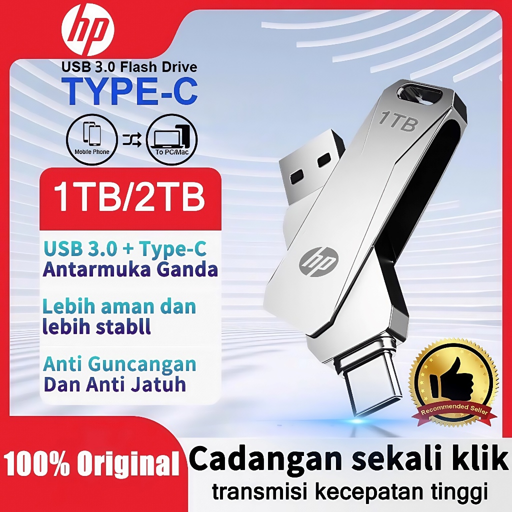 Flashdisk Hp Otg Type-C 1Tb 2Tb Metal Usb 3.0 High Speed Laptop Pc