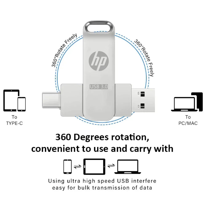 Flashdisk Hp Type-C 3In1 1Tb 2Tb Usb 3.0 Otg Waterproof High Speed