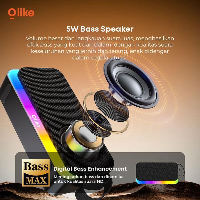 DZL - OLIKE SF18 Speaker Bluetooth RGB Light 8H Playtime Wireless Audio Bass Max Sound TWS Mode Ori