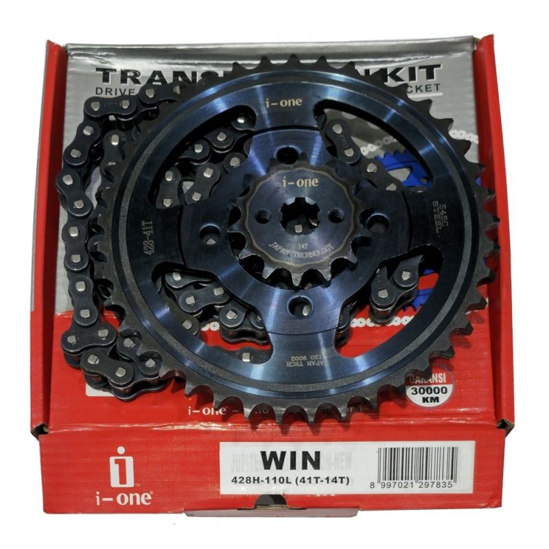 PAKET GEAR SET WIN 100/GEAR PAKET RANTE WIN 100/CHAIN KIT WIN 41T-14T/GIGI TARIK WIN100 PLUS RANTAI