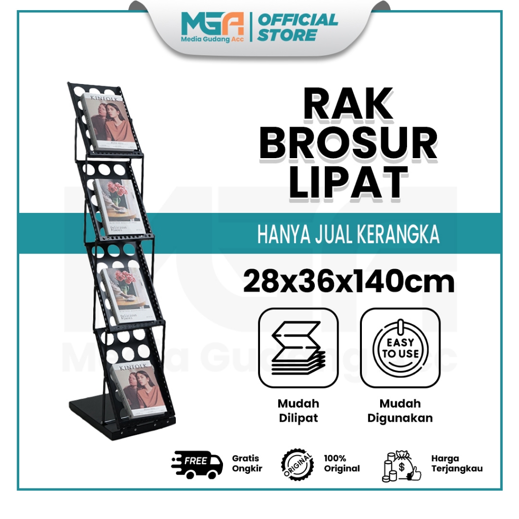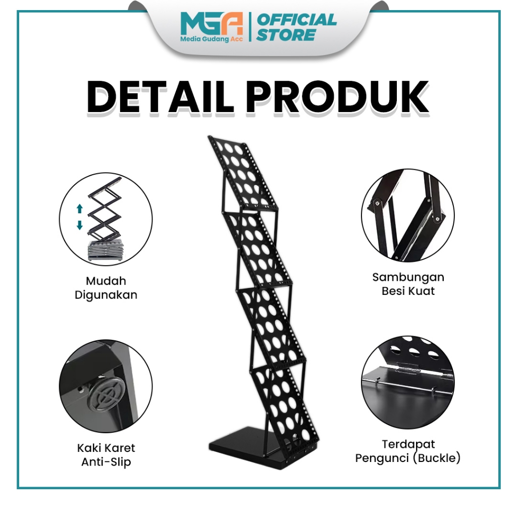Rak Brosur Lipat 4 Susun / Rak Majalah Display Portable / Rak Pameran Besi Lipat