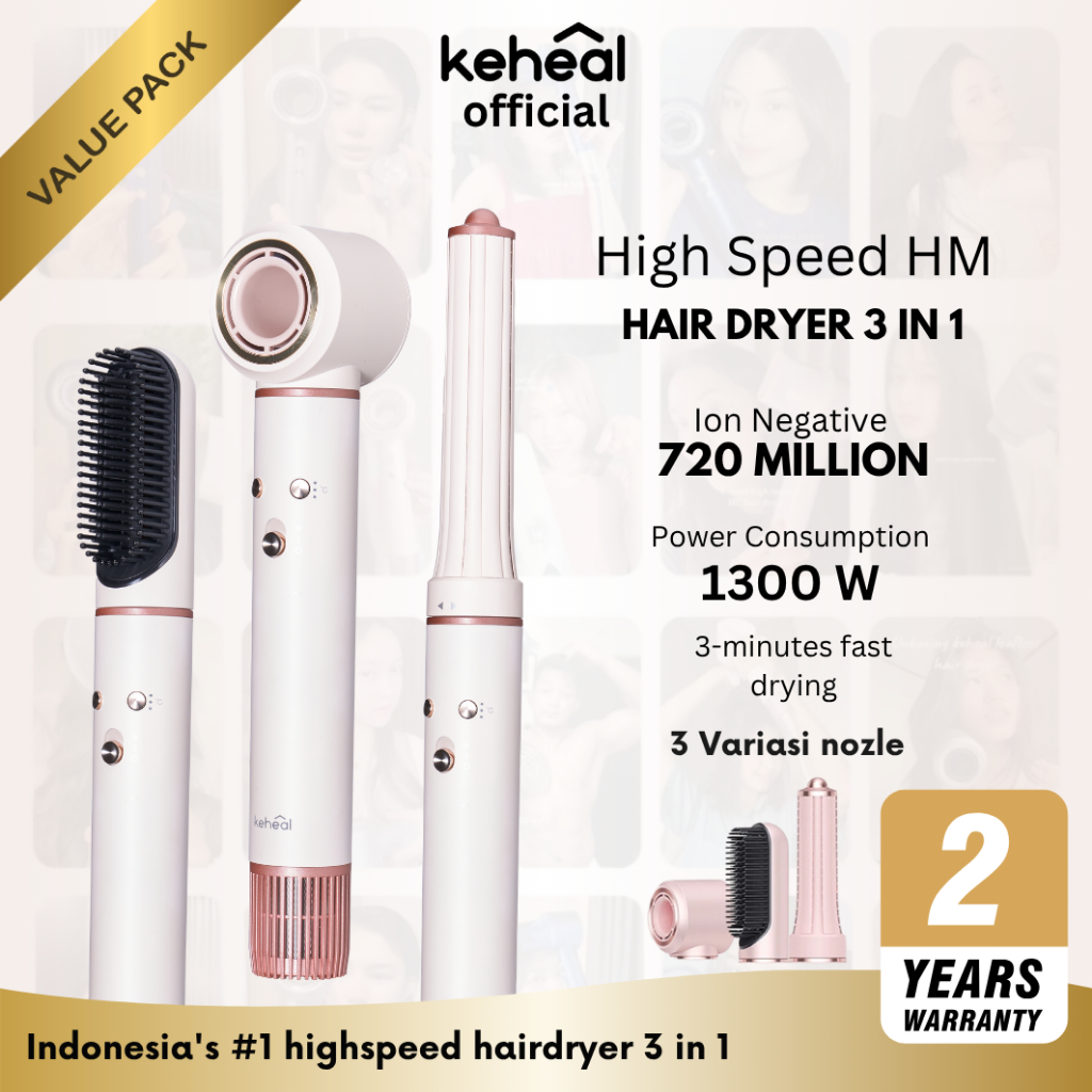 Hair Dryer 3In1 Keheal Negative Ion Anti Radiasi High-Speed Multifungsi