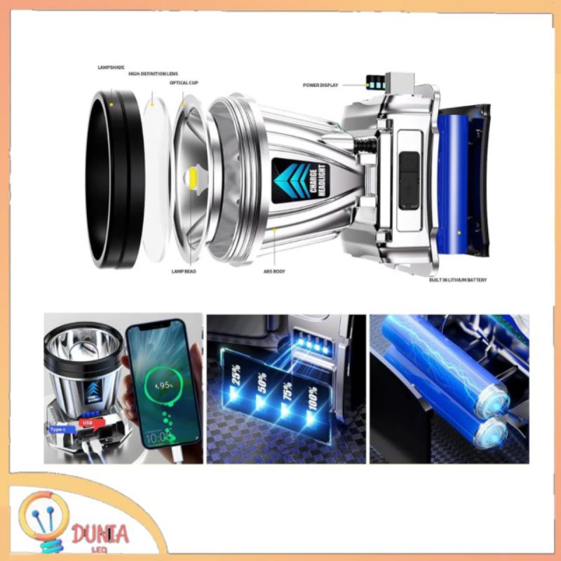 Headlamp outdoor senter Kepala 300 watt super terang anti air Senter kepala Led Zoom Senter awet