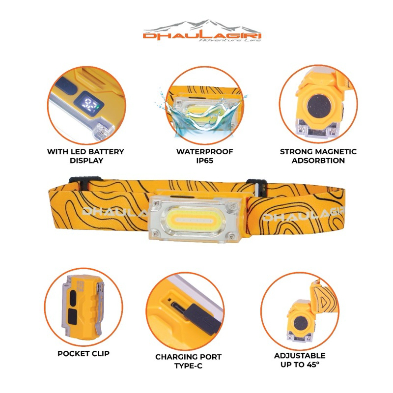 Dhaulagiri Multifunction Rechargeable Headlamp 619/ Senter Kepala Multifungsi