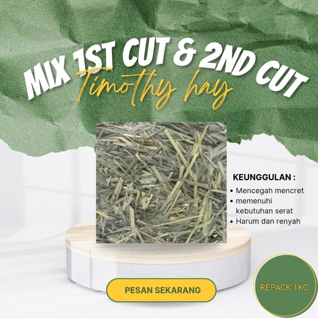 RUMPUT TIMOTHY IMPORT MIX 1ST CUT & 2ND CUT MAKANAN KELINCI MARMUT CHINCILLA TORTO REPACK 1KG