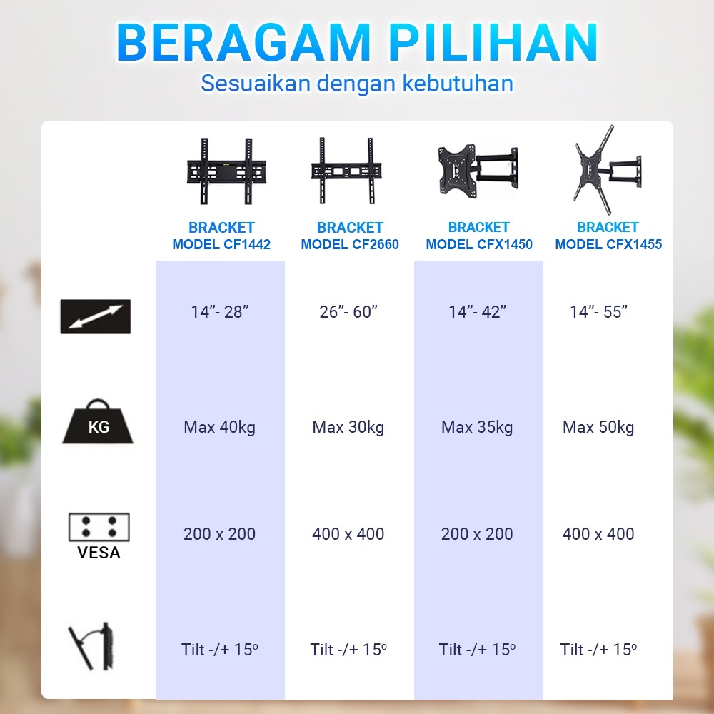 Bracket Tv Finito 1743 Inch Kokoh Full Besi Led Lcd