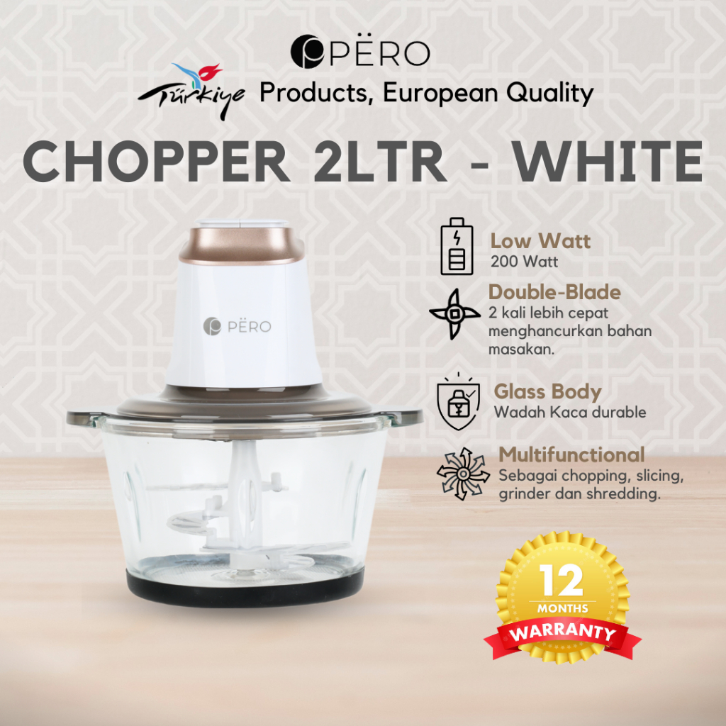 Glass Fancy Pero Chopper 2 Liter Food Processor 200W Penggiling Daging Sayur Buah