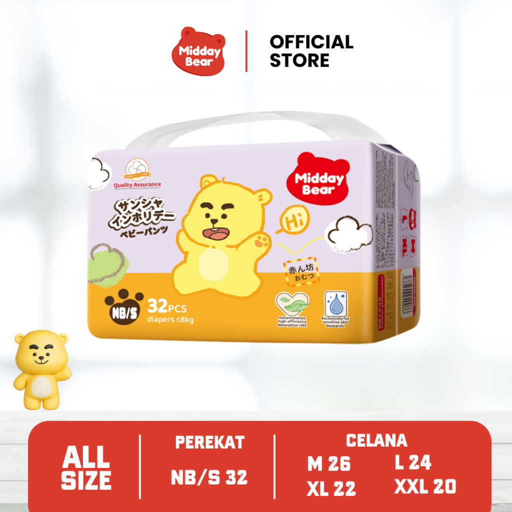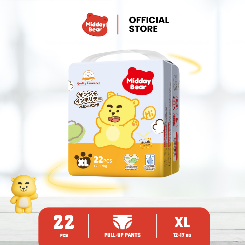 [1-4 Pack] Midday Bear Popok Bayi Celana Pants dan Popok Bayi Perekat Comfort Fit Xtra Kering & Dry - Pull-Up Holiday Series Size M26/L24/XL22/XXL20