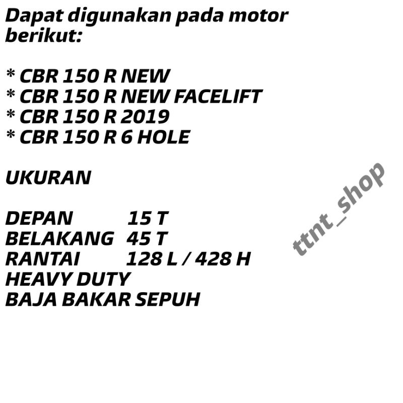 Gear Gir Set CBR 150R NEW FACELIFT (K45N) 2019 Lubang Baut 6 CBX 150R Set Paket Gear CBR 150r LED