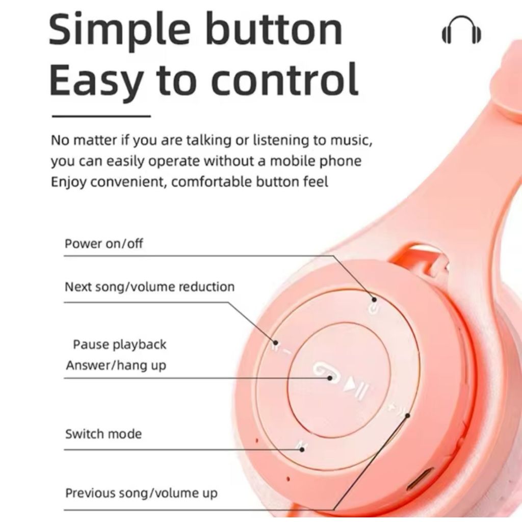 Headphone Bluetooth Y08 Macaron Wireless Headset Lipat Mic Bass Stereo Anak Perempuan Gaming