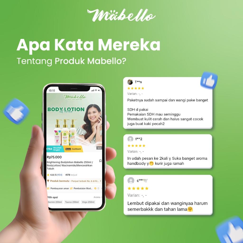 Body Lotion Mabello Brightening Body Lotion Perfume Lotion Niacinamide Melembabkan Skin Barrier