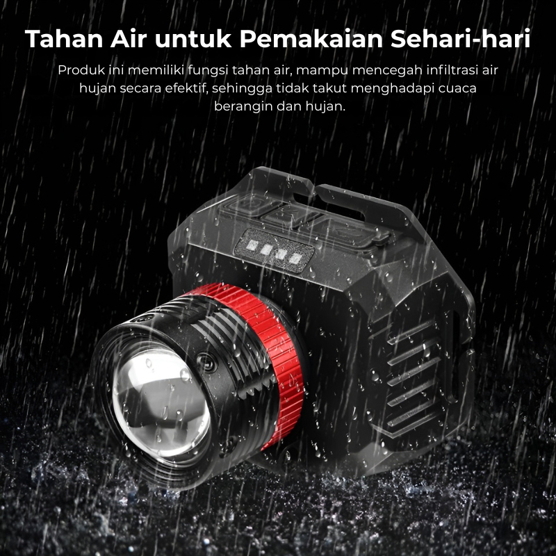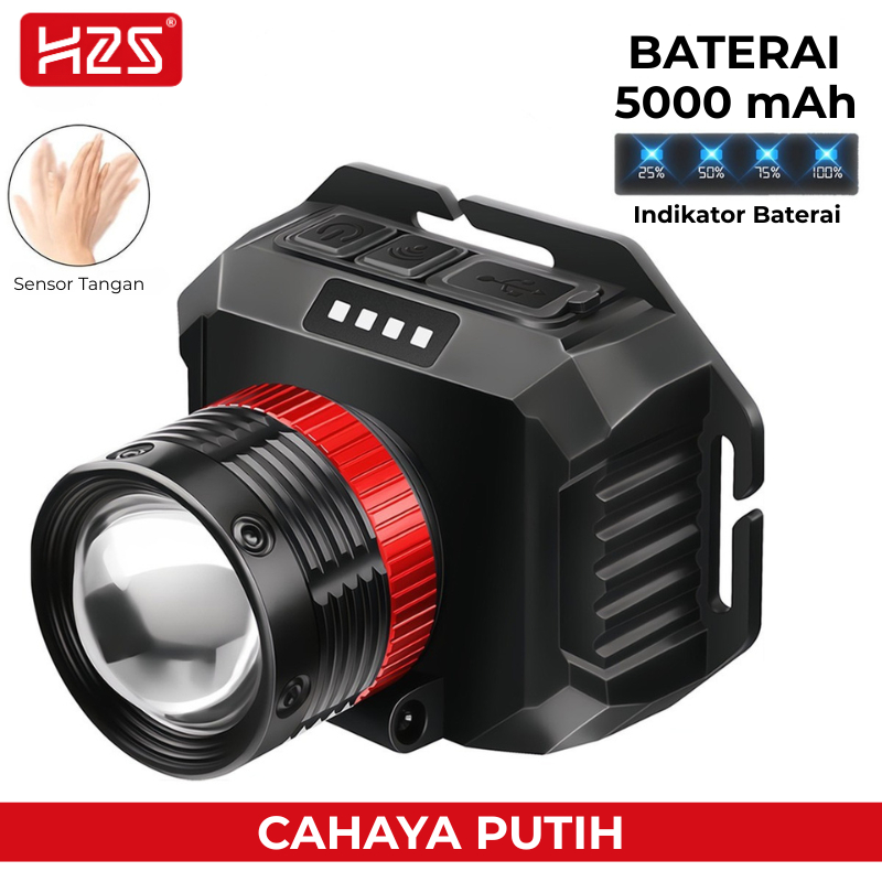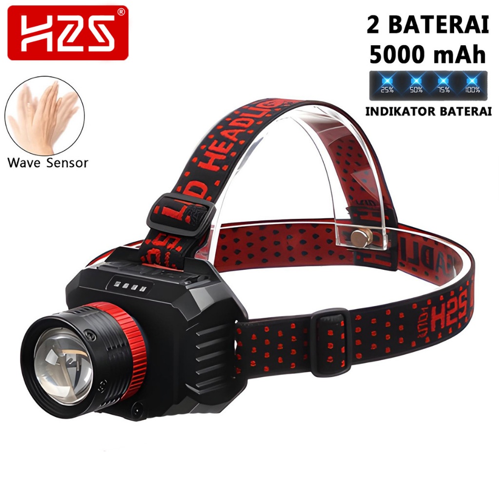 H2S Senter Kepala Cas LED Laser Sensor Gerak 50w 2 Baterai 5000mAh Zoom Out In Putar HS-4877P