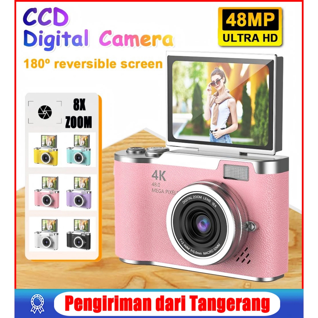 TEEKA 64/48MP Digital Kamera Mini 180° Flip Screen Kamera 4K Vlog 8X Digital Zoom Dengan Dukungan Selfie untuk Hadiah Pemula