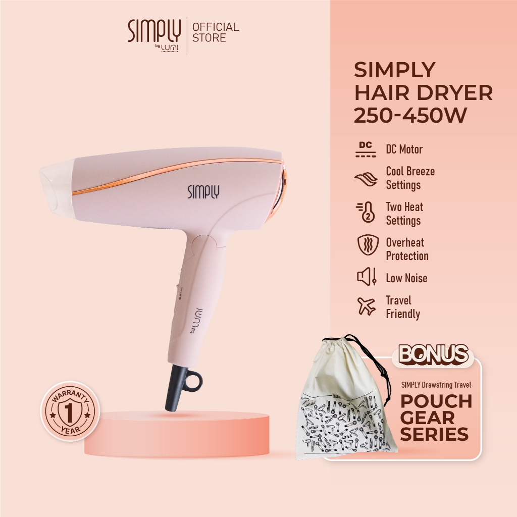 Hair Dryer Foldable Simply By Lumi Professionals 250-450 Watt Free Pouch