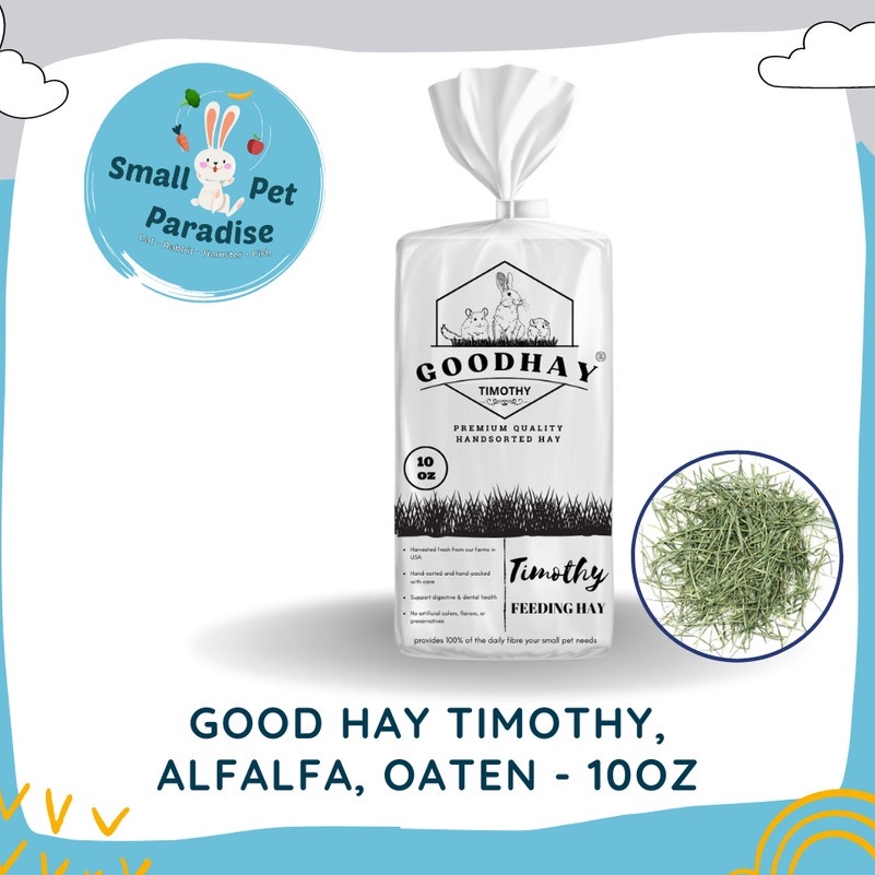 GOOD HAY TIMOTHY / OATEN / ALFALFA MAKANAN KELINCI CHINCHILLA GUINEA PIG HAMSTER TORTOISE FRESH PACK 10 OZ / 300gr