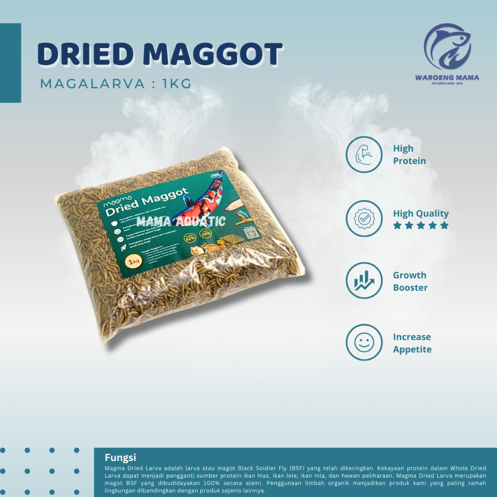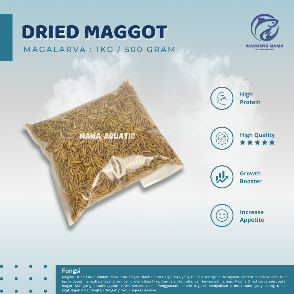 Dried Maggot Kering BSF 1kg Grade A Pakan Makanan Ikan Channa Koi Louhan Arwana Hamster Reptil Ayam