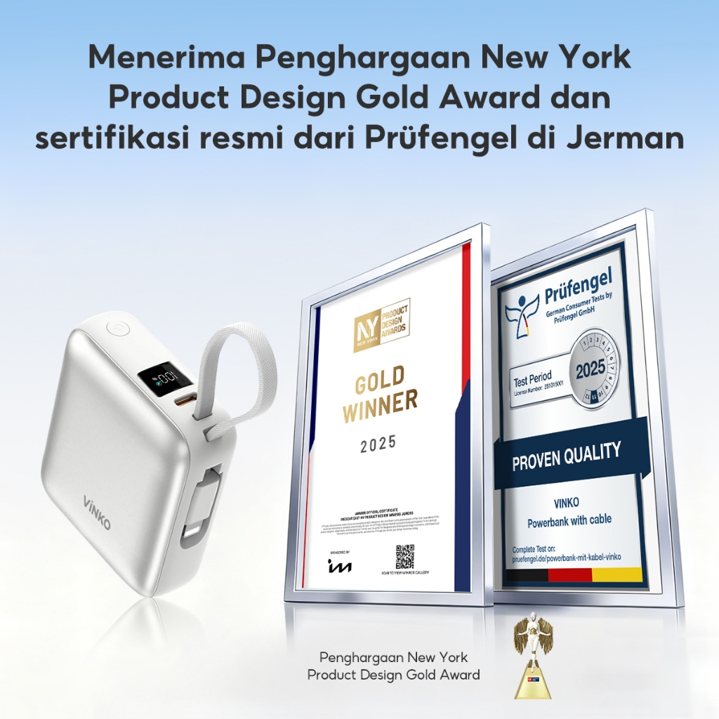 Tersertifikasi CCC] VINKO V9 Pocket Powerbank 10000mAh 22.5W Fast Charging PD 3.0 Power bank With C+L Cable untuk iPhone
