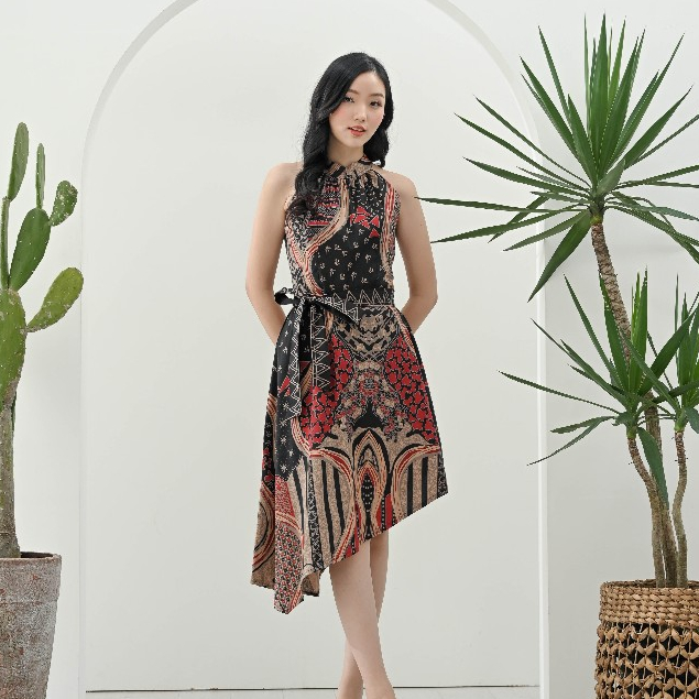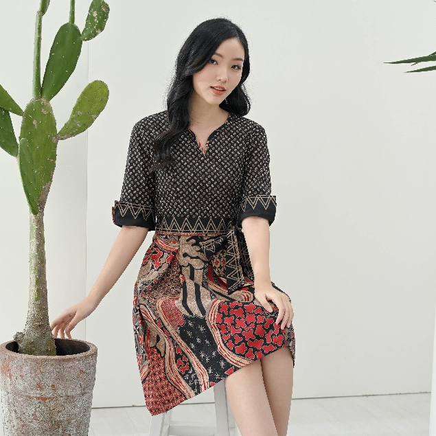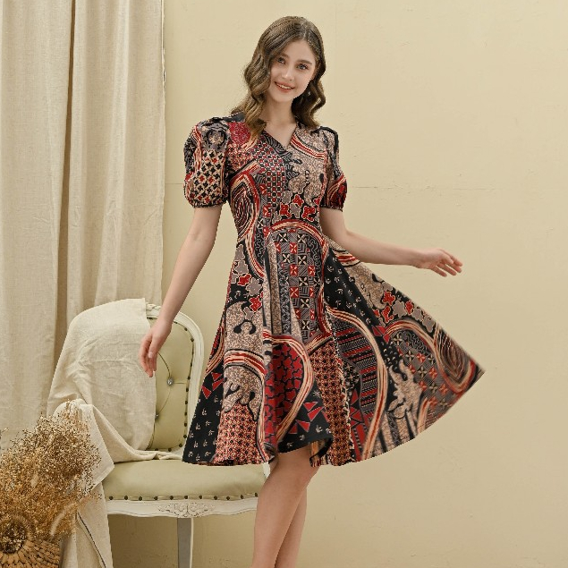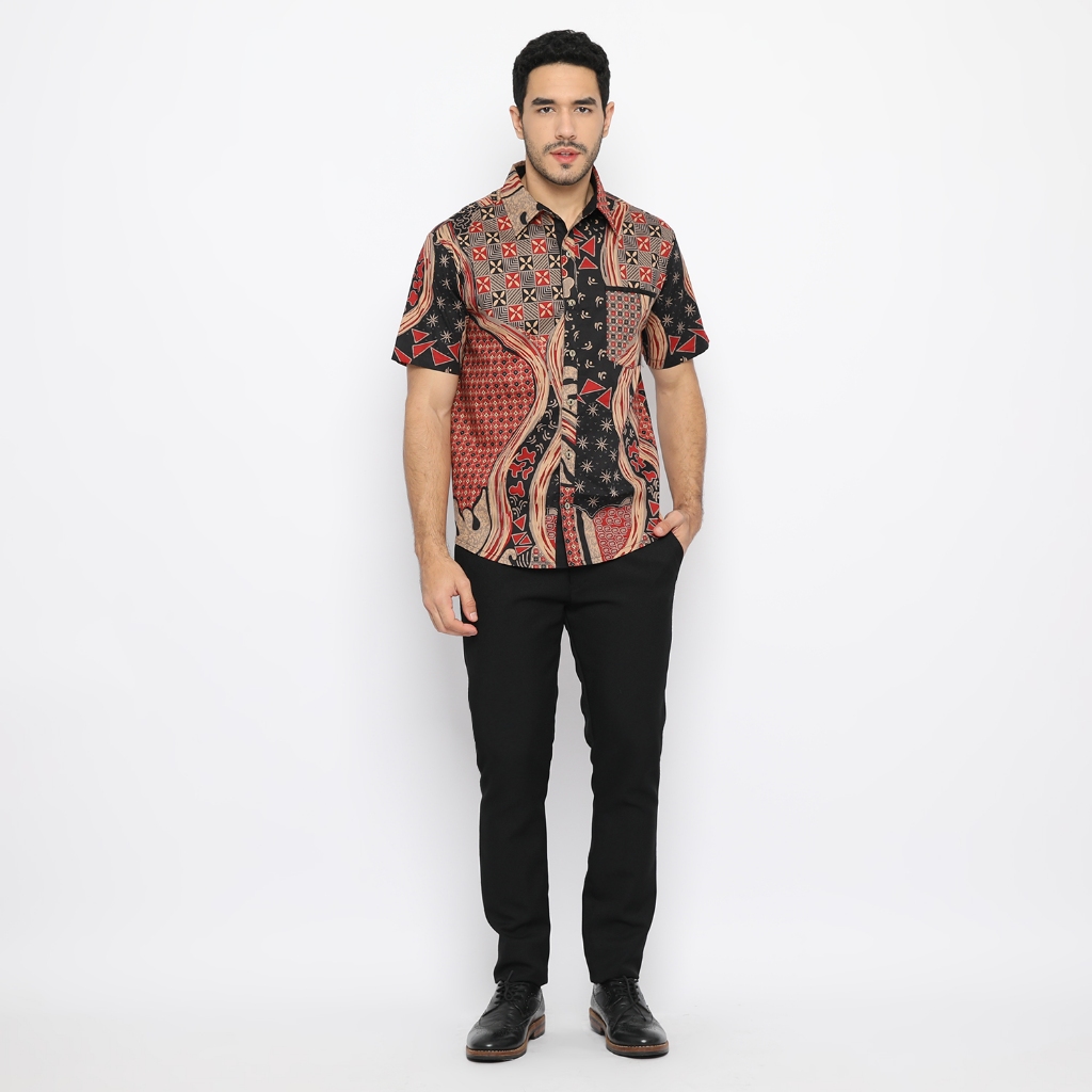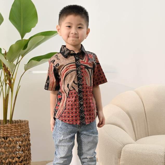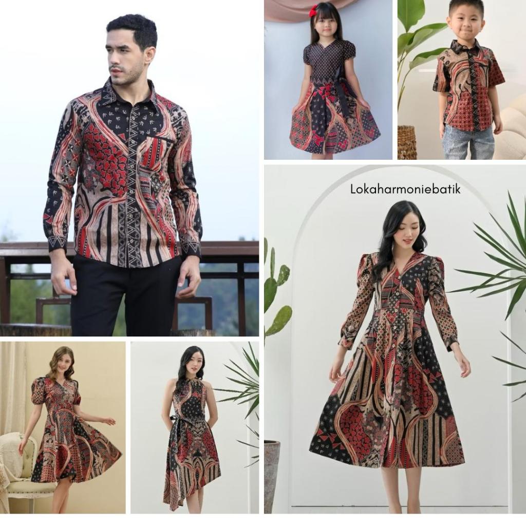 Batik Motif MTS Coklat Hitam Merah - Baju Atasan Dress Kemeja Batik Keluarga Pasangan Couple Anak Modern Kekinian Imlek