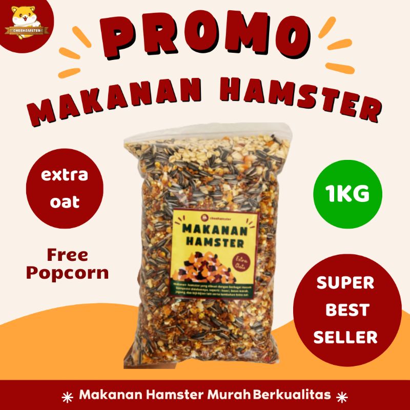 Makanan Hamster 1kg Extra Oat + Omega 3 | FREE POPCORN | tanpa pelet