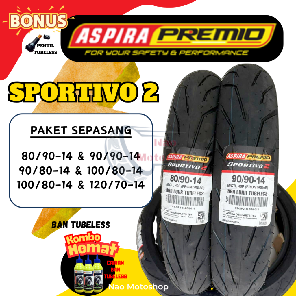 PAKET SEPASANG ASPIRA PREMIO SPORTIVO 2 BAN TUBELESS MATIC RING 14 BEAT VARIO MIO SCOOPY LEXY FINO