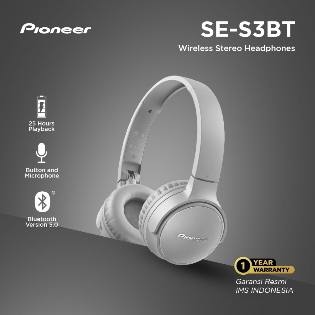 Headphone Pioneer Bluetooth S3Bt Wireless Stereo Bass