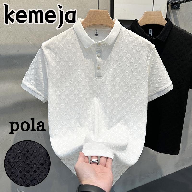 Kaos Kerah Pria Polo Shirt Lengan Pendek Bermotif Hitam Putih Premium
