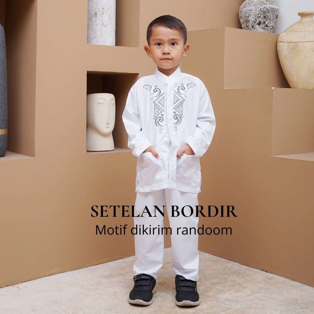 Baju Setelan Koko Anak Klasik Muslim Laki-laki Warna Putih Lengan Panjang Untuk PAUD TK SD MI