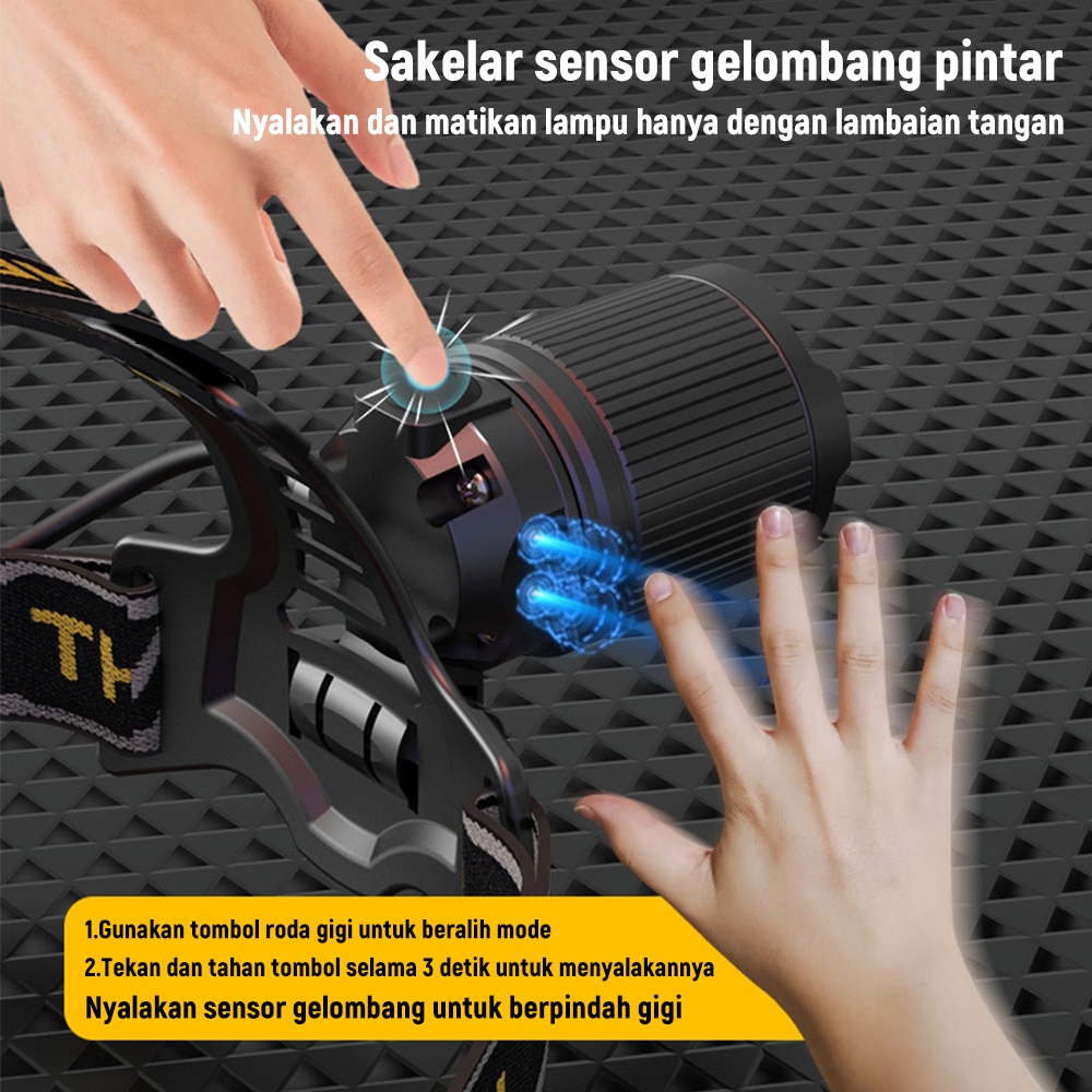 senter lampu depan LED Senter Kepala Zoom Headlamp Lampu putih dan kuning CLowicsR 1500 Lumens Tpye-c USB rechargeable 186502