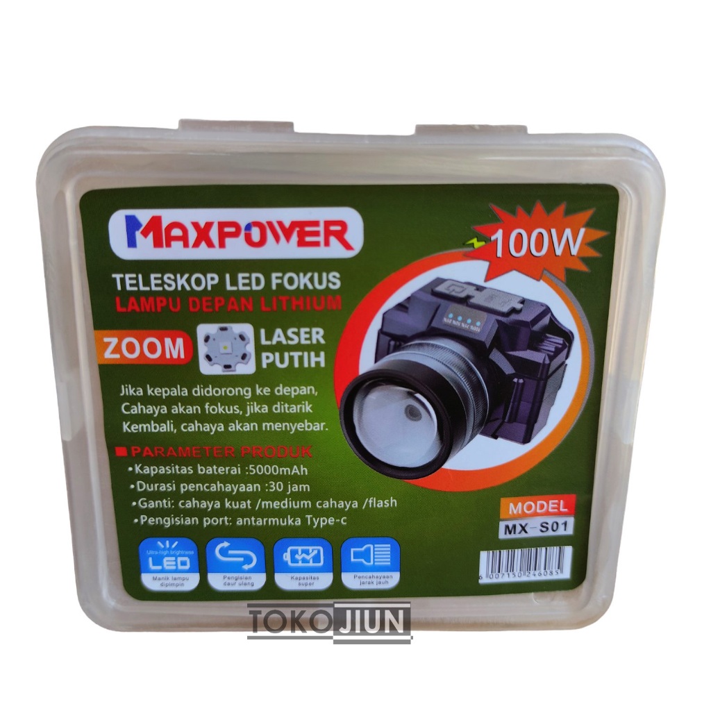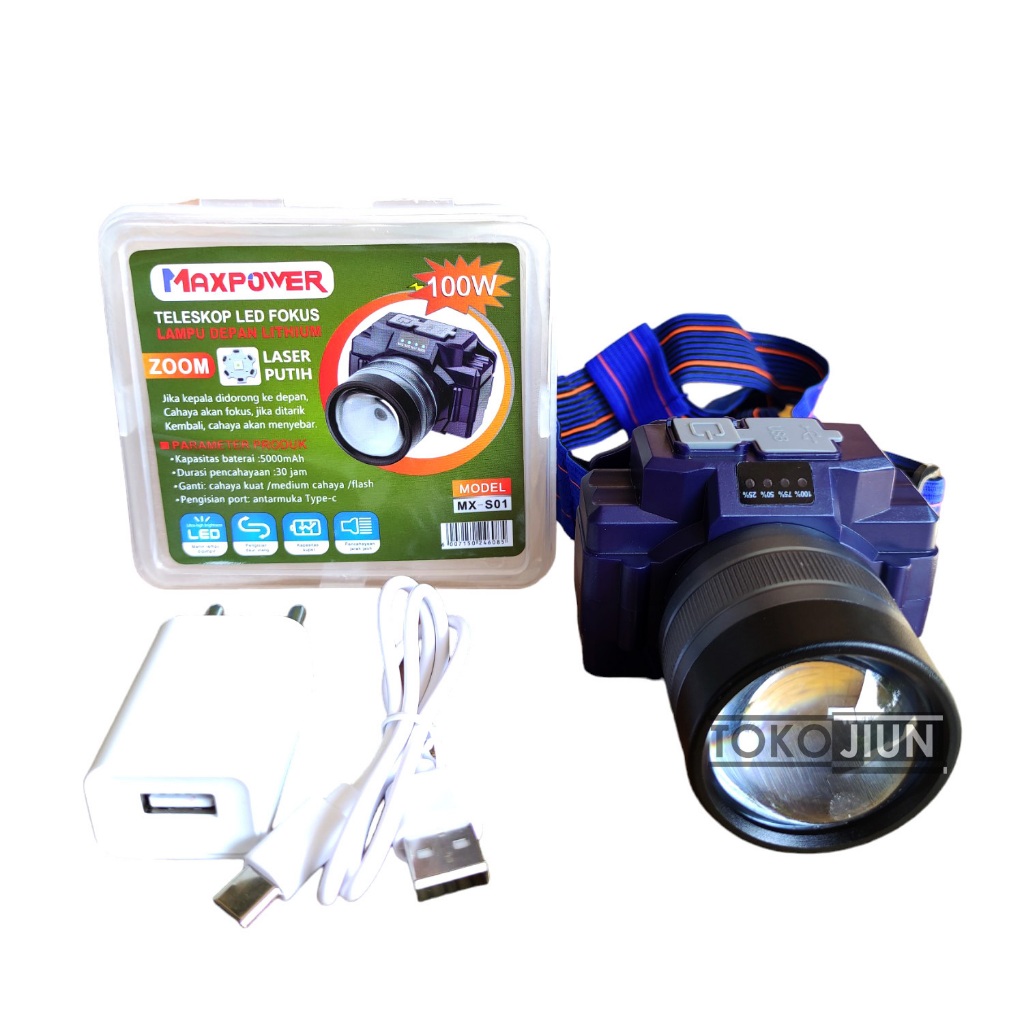 Senter Kepala LED Headlamp Super Terang Bisa Zoom Bisa Di Cas