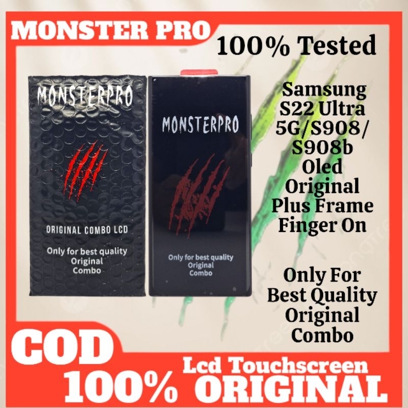 LCD TOUCHSCREEN SAMSUNG GALAXY S22 ULTRA 5G/S908/S908B/S908U OLED ORIGINAL PLUS FRAME FINGER ON