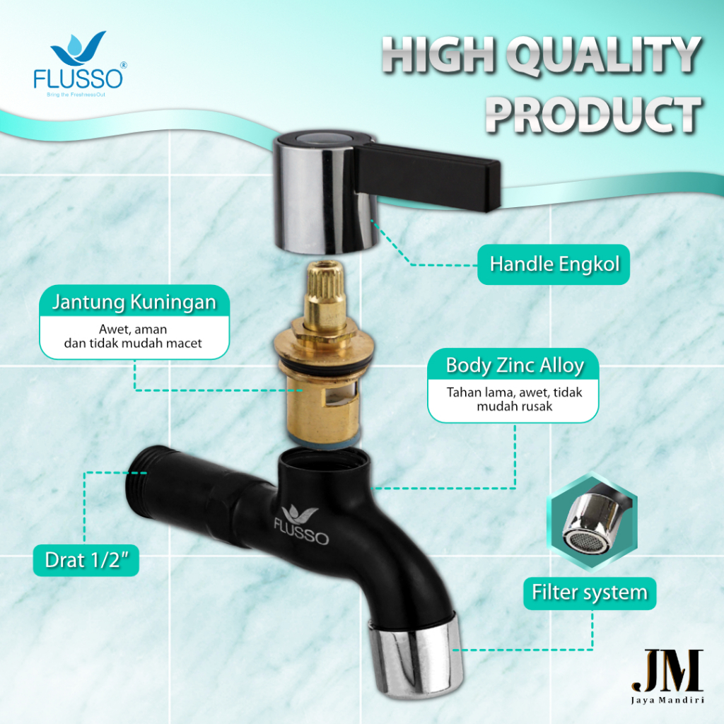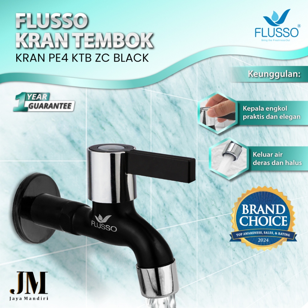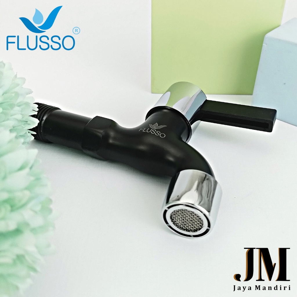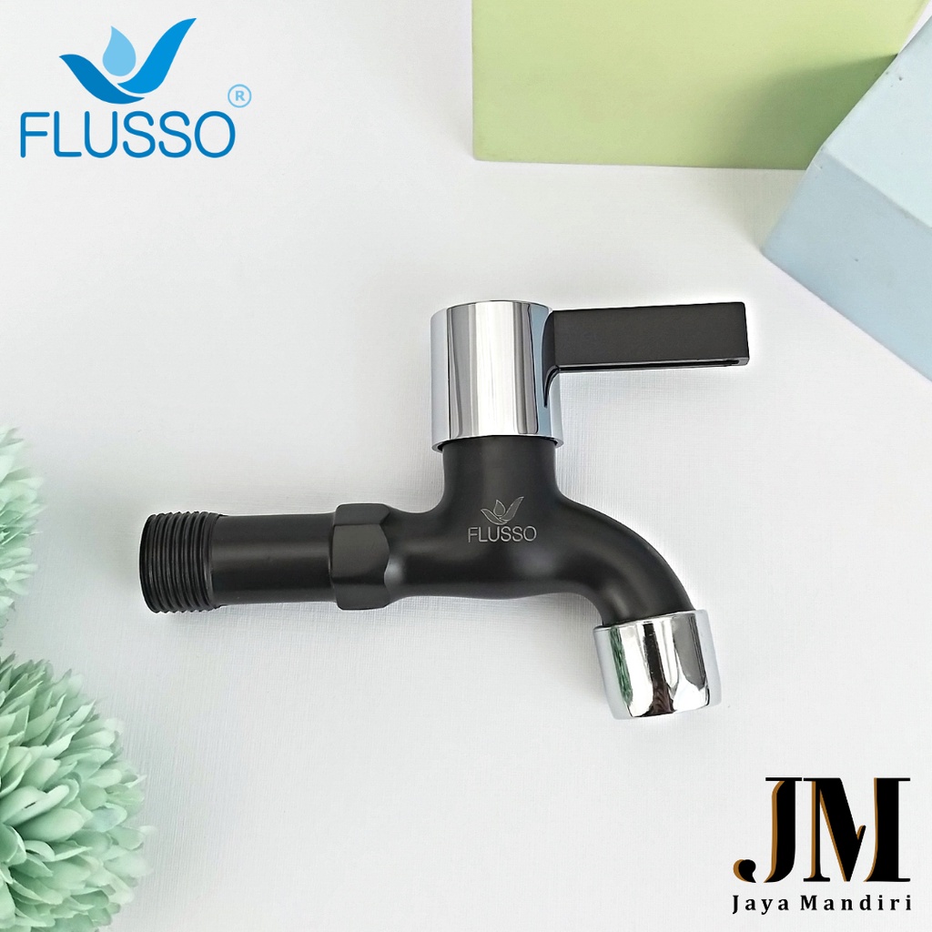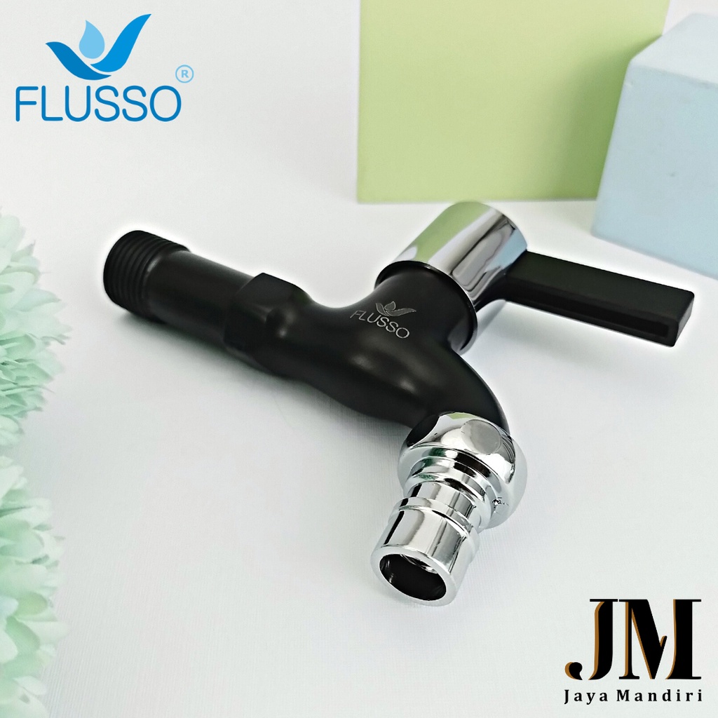 Kran Tembok Flusso Black Elegan Kepala Engkol Air Deras Halus Anti Karat Drat 1/2 Inch