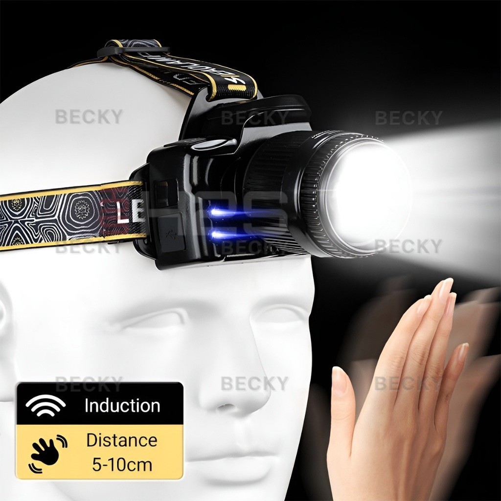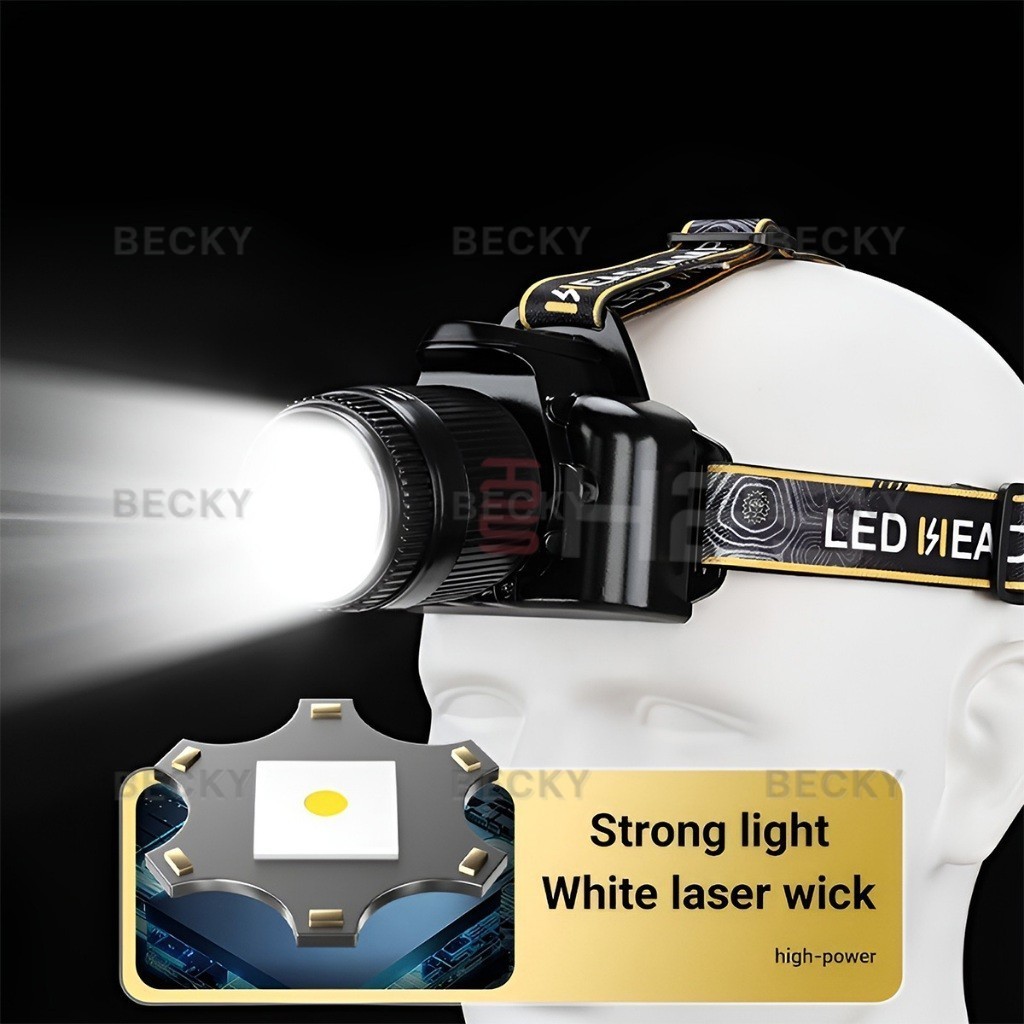 BECKY Senter Kepala LED Laser Zoom Rotary 2 Baterai 5000mAh 50w 6 Mode Waterproof IPX6 HS-U8