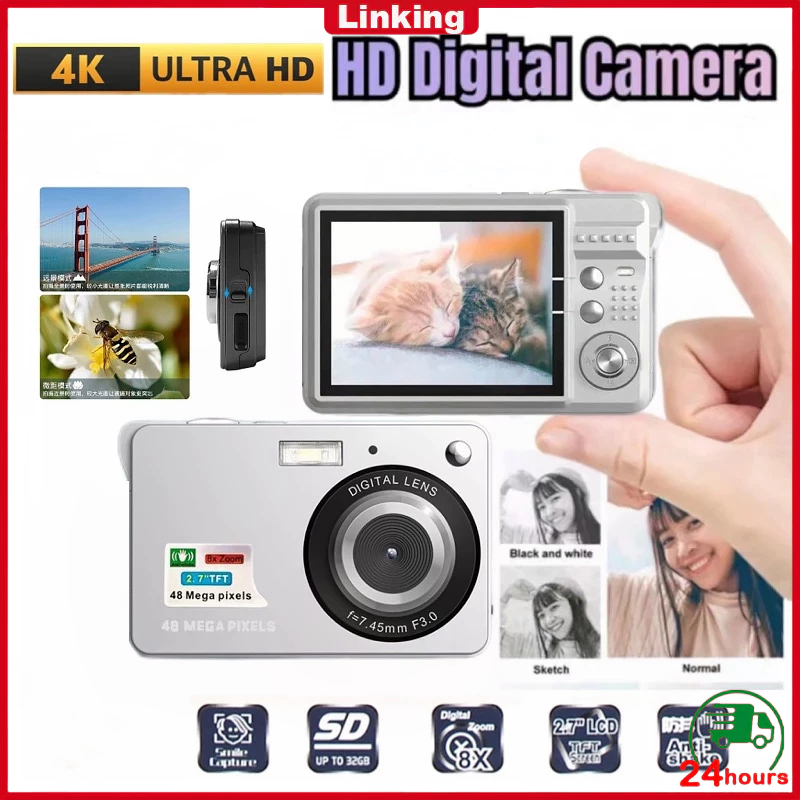 【】K09 Kamera Digital HD 48 Juta Piksel camera mini kamera Kamera digital pocket CAM 48MP 8X 1080P Kamera DSLR Fotografi Selfie Rumah Tangga Siswa 48MP Layar LCD 2,7 Inci Zoom 8x Tangkap
