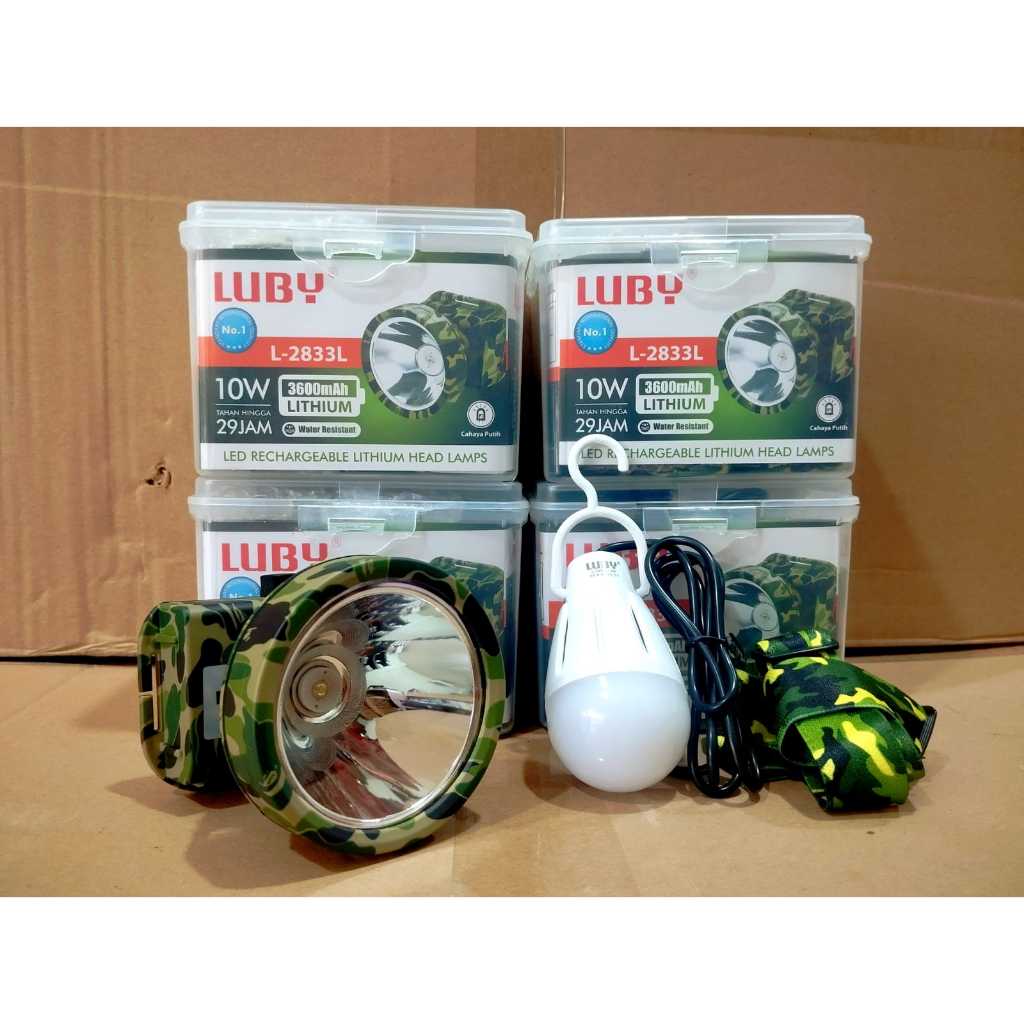 Senter Kepala Luby L-2833L 10W 3600mAh Tahan hingga 29 Jam free lampu emergency 3W