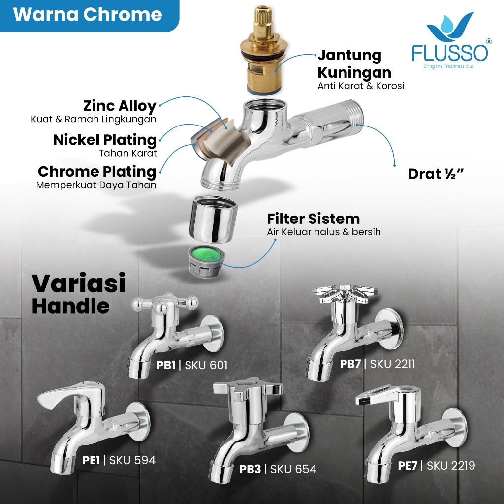 Kran Tembok Taman Flusso Original Ktb Pe4 Untuk Kamar Mandi Dan Taman Garansi