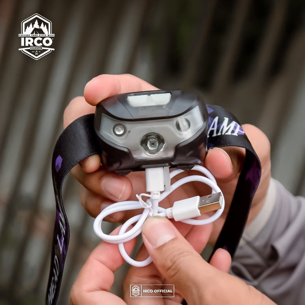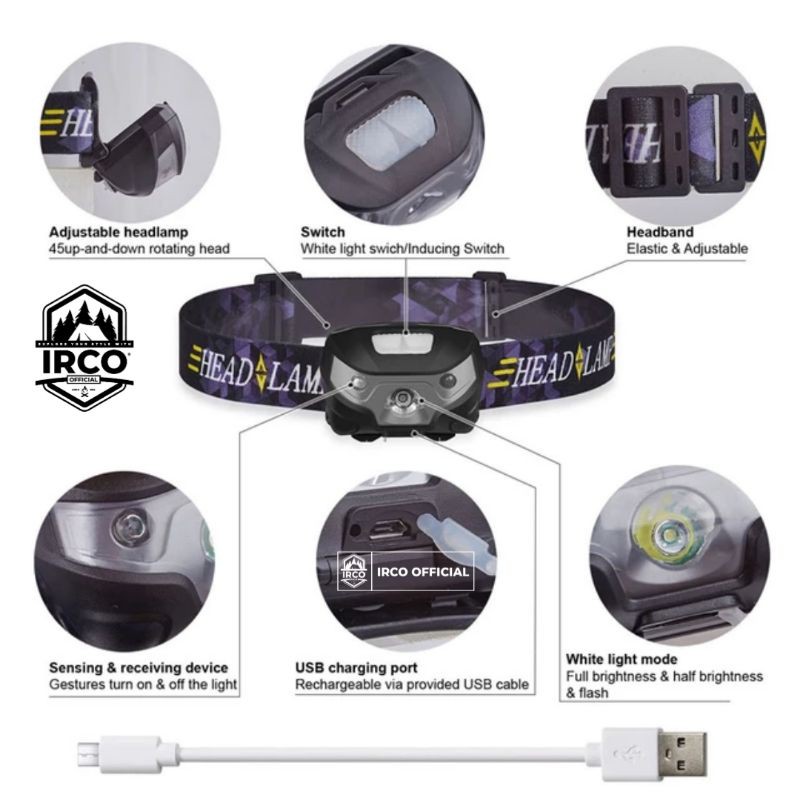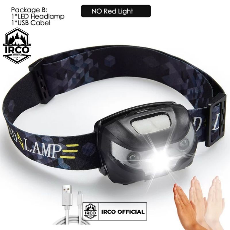 IRCO Headlamp Gunung Sensor Gerak Tangan Waterproof Charge - Senter Kepala Outdoor Hiking Anti Air