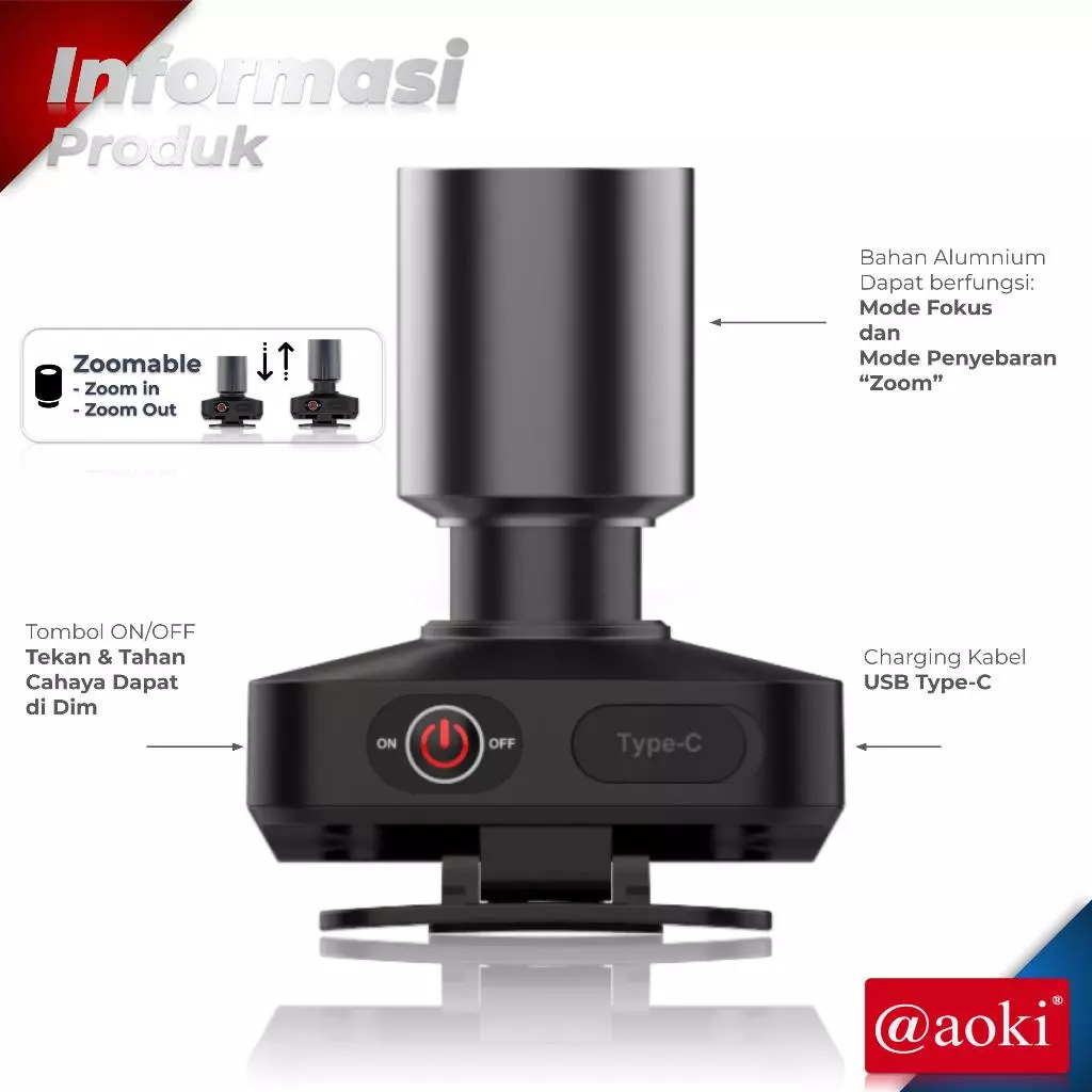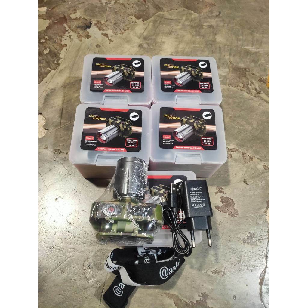 PROMO AOKI Senter Kepala Zoom 60 Watt 1100 Lumens Lengkap Komplit Bisa Di Charger Tipe C | Senter Aoki AK-3671A AK-3651A