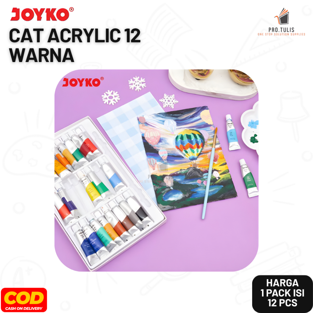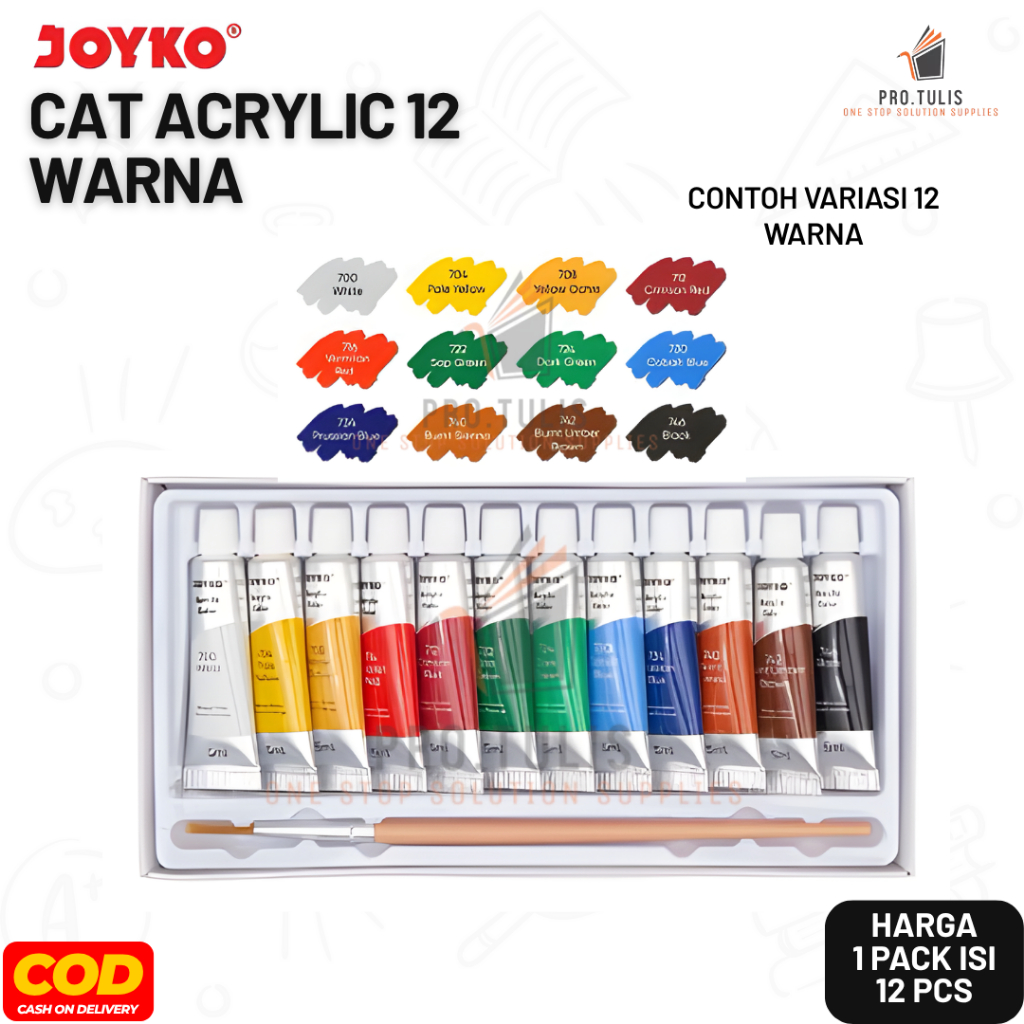 (1 Set) Cat Acrylic Joyko 12 Warna 5ml + Kuas Pro.tulis