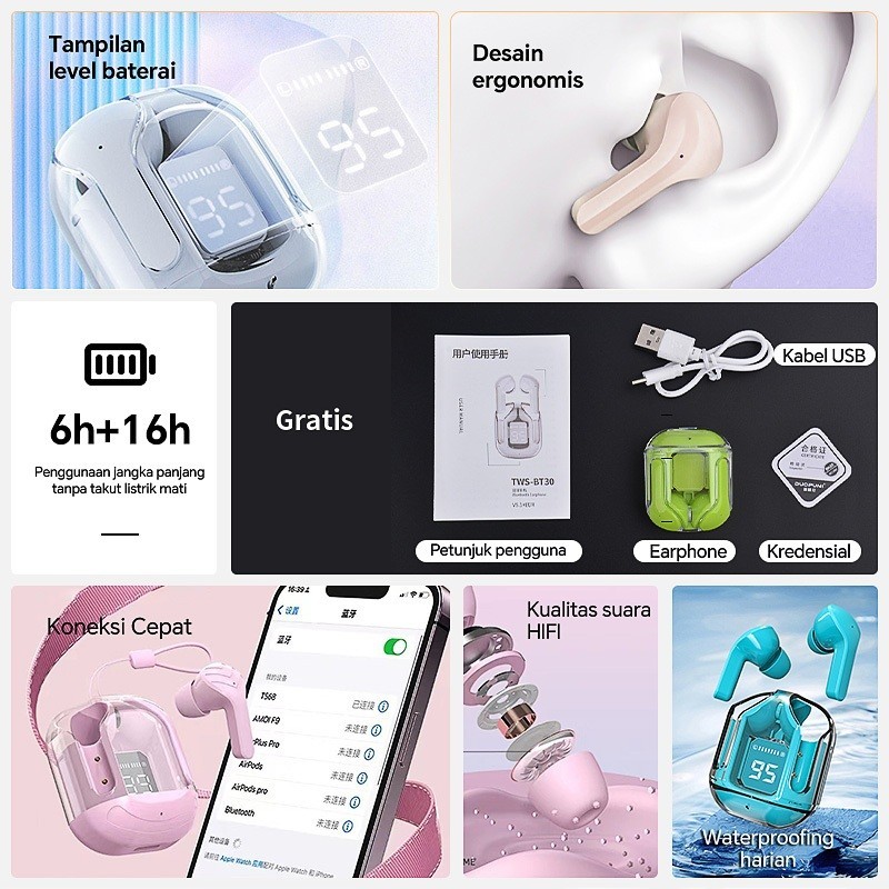 Headset Bluetooth Full Bass Air31 Tws Bluetooth 53 Headset Nirkabel Dengan Mikrofon Earphone